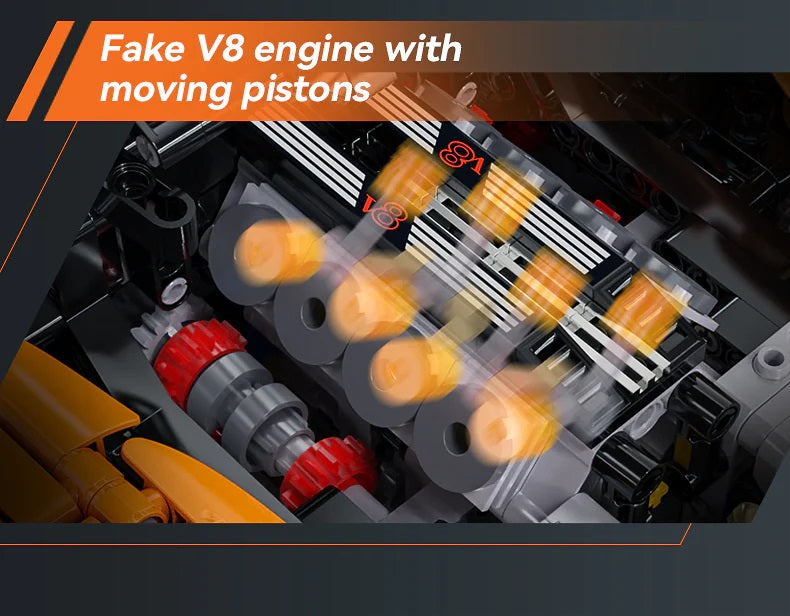 • Gefälschter V8-Motor mit beweglichen Kolben